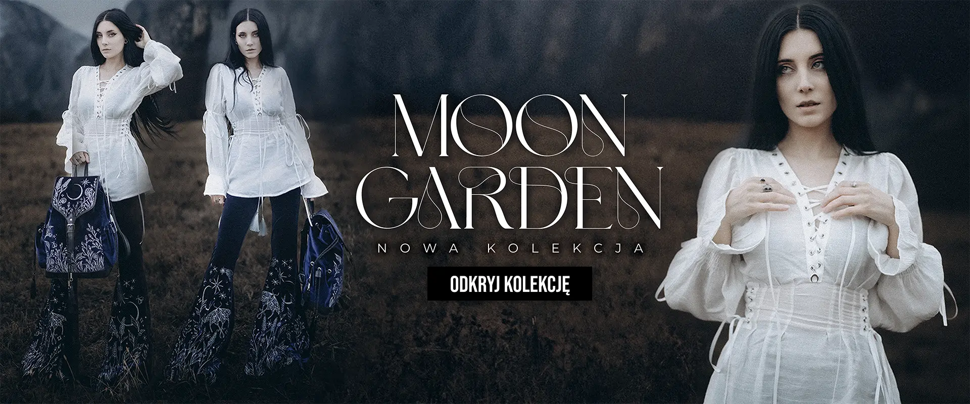 HERBAL HOODIE haft paproć i księżyc Długa, gotycka bluza z paprocią