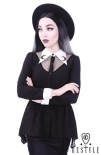 Czarna bluzka z baskinką, Biały, długi kołnierzyk, haft z księżycem "LUNA SHIRT"