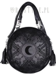Handtasche mit Mondstickerei, Hexenhandtasche mit Mond und Tesseln "HENNA BLACK ROUND BAG"